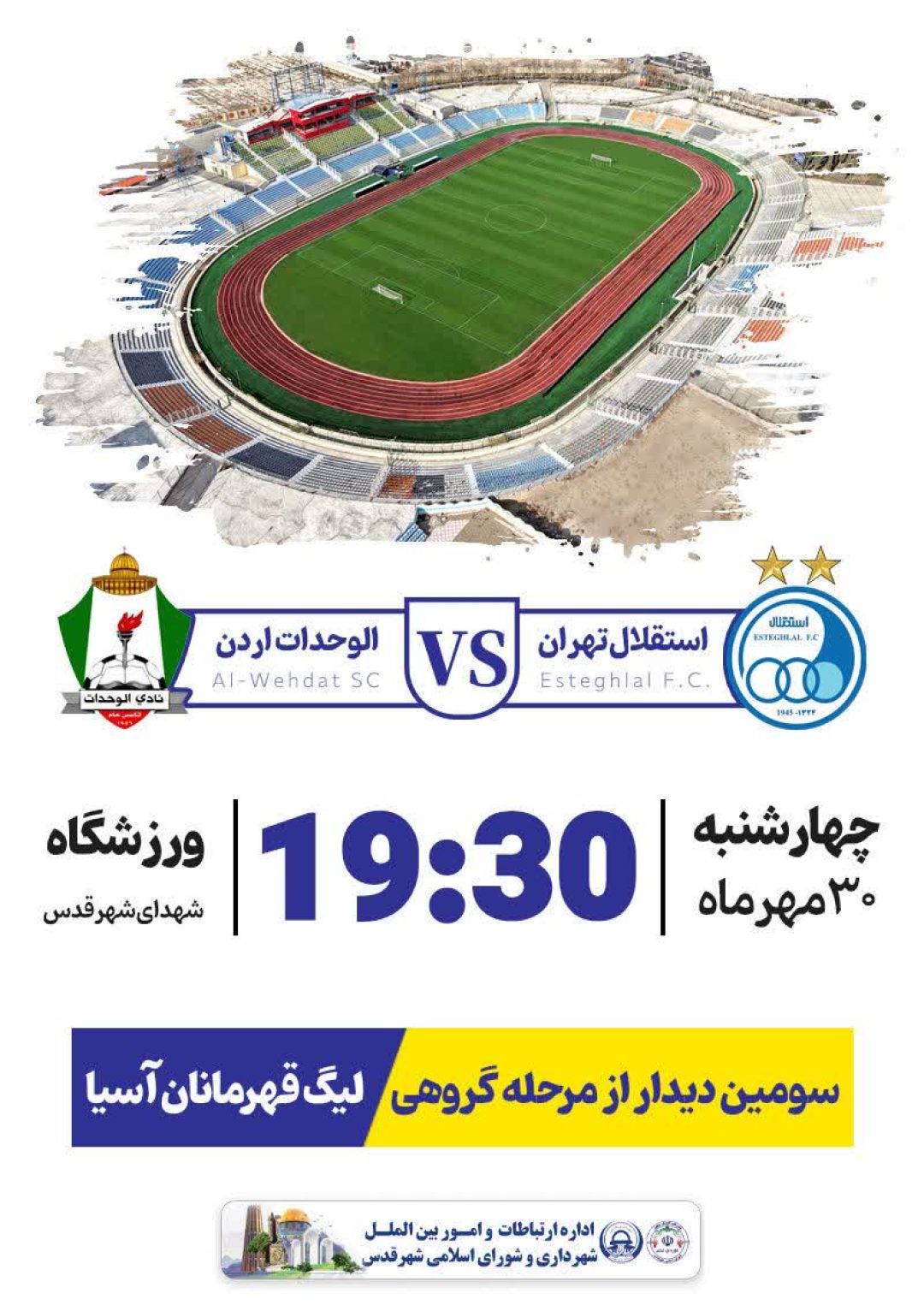 شهرقدس بازی استقلال و الوحدات را در لیگ قهرمانان آسیا میزبانی خواهد کرد.