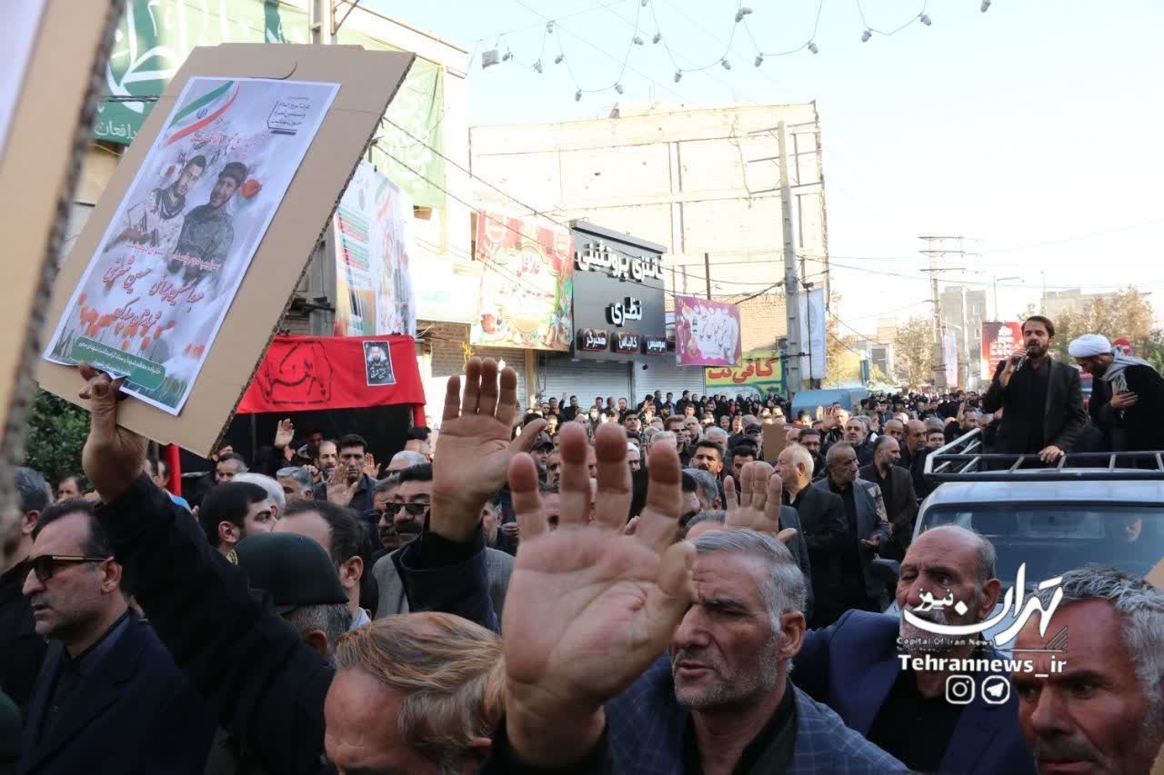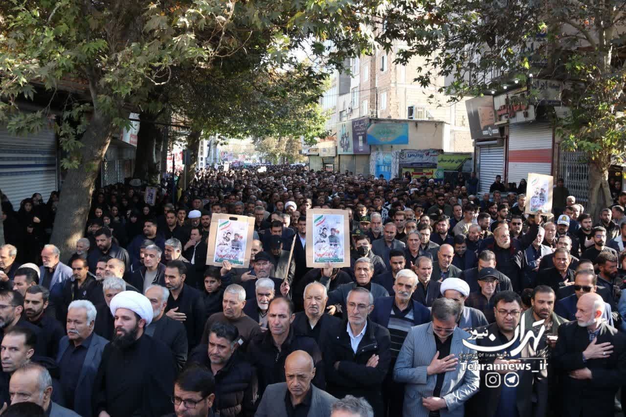 پیکر شهیدان حسین شربتی و عبدالحسین چراغی امروز با حضور گسترده مردم و مسئولان در شهرک امیریه شهریار تشییع شد.